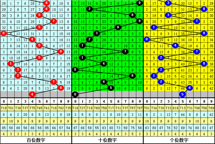 【和值】:上期和值为19,走高6点位,本期注意和值走低,防和值9出现。