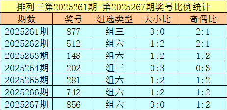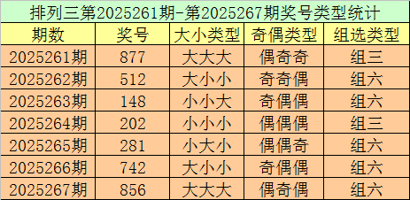 排列三第2025267期回顾:奖号856,奇偶比1:2,大小比3:0,和值19,类型:组六。