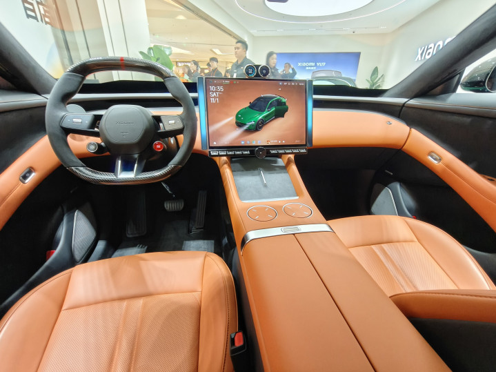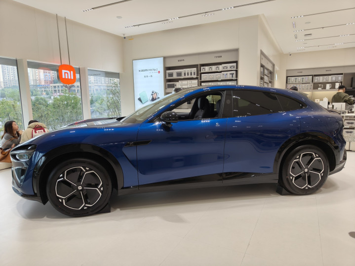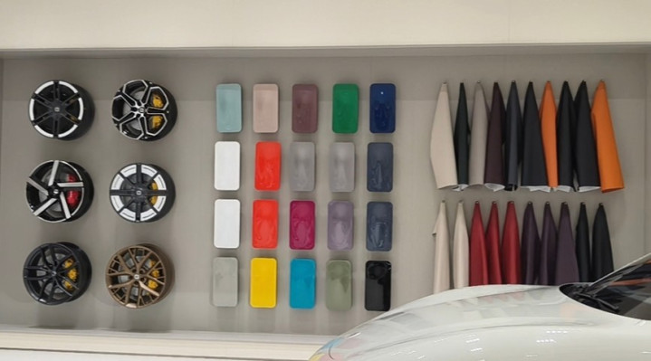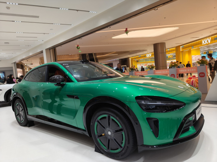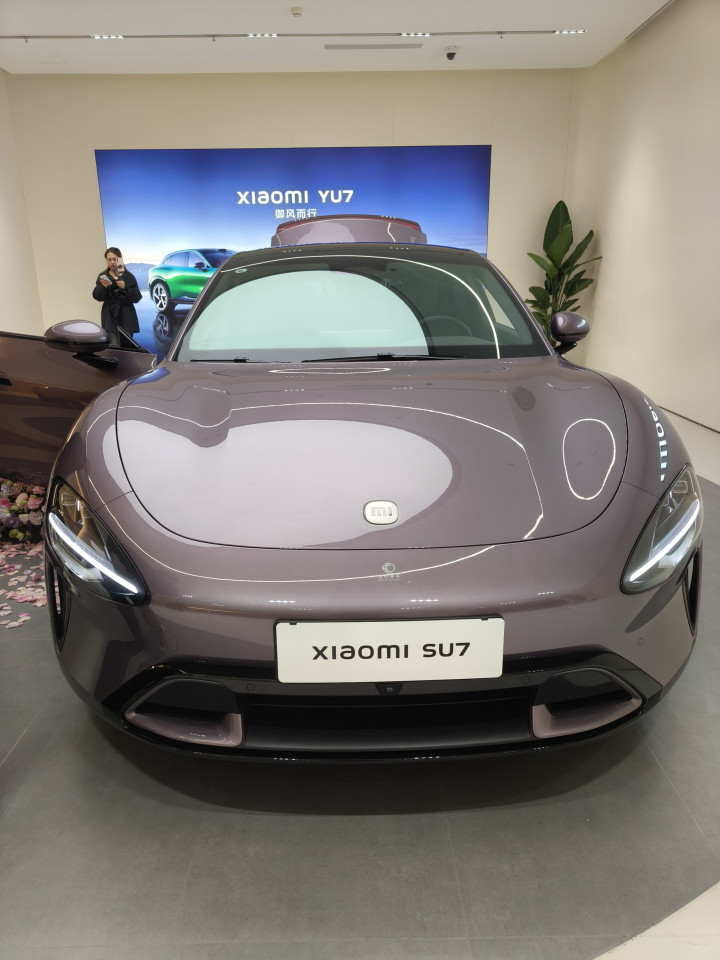 在店内汽车展示区我们可以看到小米SU7,小米YU7系列丰富的车型配置,可以近距离的感受外观设计及智能科技。绿紫蓝经典车色。轮毂以及内饰皮料颜色展示墙。在3C产品区可以体验小米手机、平板电脑、笔记本电脑、智能穿戴设备(如手环、手表)、车载手机支架等产品。