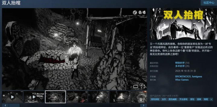 在等待市场机会的空窗期里,为了转换心情,也为了消遣放松,他们把上学时的一个小作业重新做成了这款名为《双人抬棺》的魔性物理合作游戏。