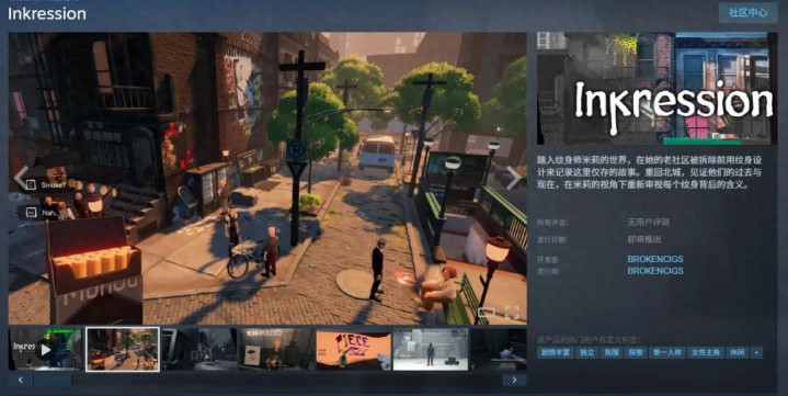 作为BROKENCIGS团队的负责人,Luke原本的野心并不在此。他们曾为一款名为《Inkression》的内容向叙事探索游戏筹划许久,那是典型的「纽大式」作品——深沉、表达欲强、艺术感重。结果,这款倾注心血的作品在找发行的路上处处碰壁。